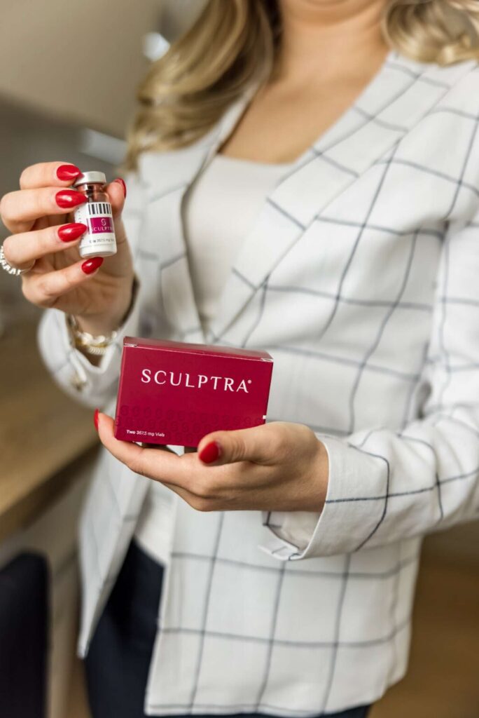 A primary advantage of Sculptra is its enduring aesthetic results. The gradual stimulation of collagen ensures a natural-looking outcome that can endure for up to two years or more. Unlike some other fillers, Sculptra’s aesthetic results develop over a few months, providing a more subtle and natural enhancement. This treatment takes a holistic approach, not only filling lines and wrinkles but also improving the skin’s quality by encouraging collagen production, resulting in a more youthful and radiant appearance.